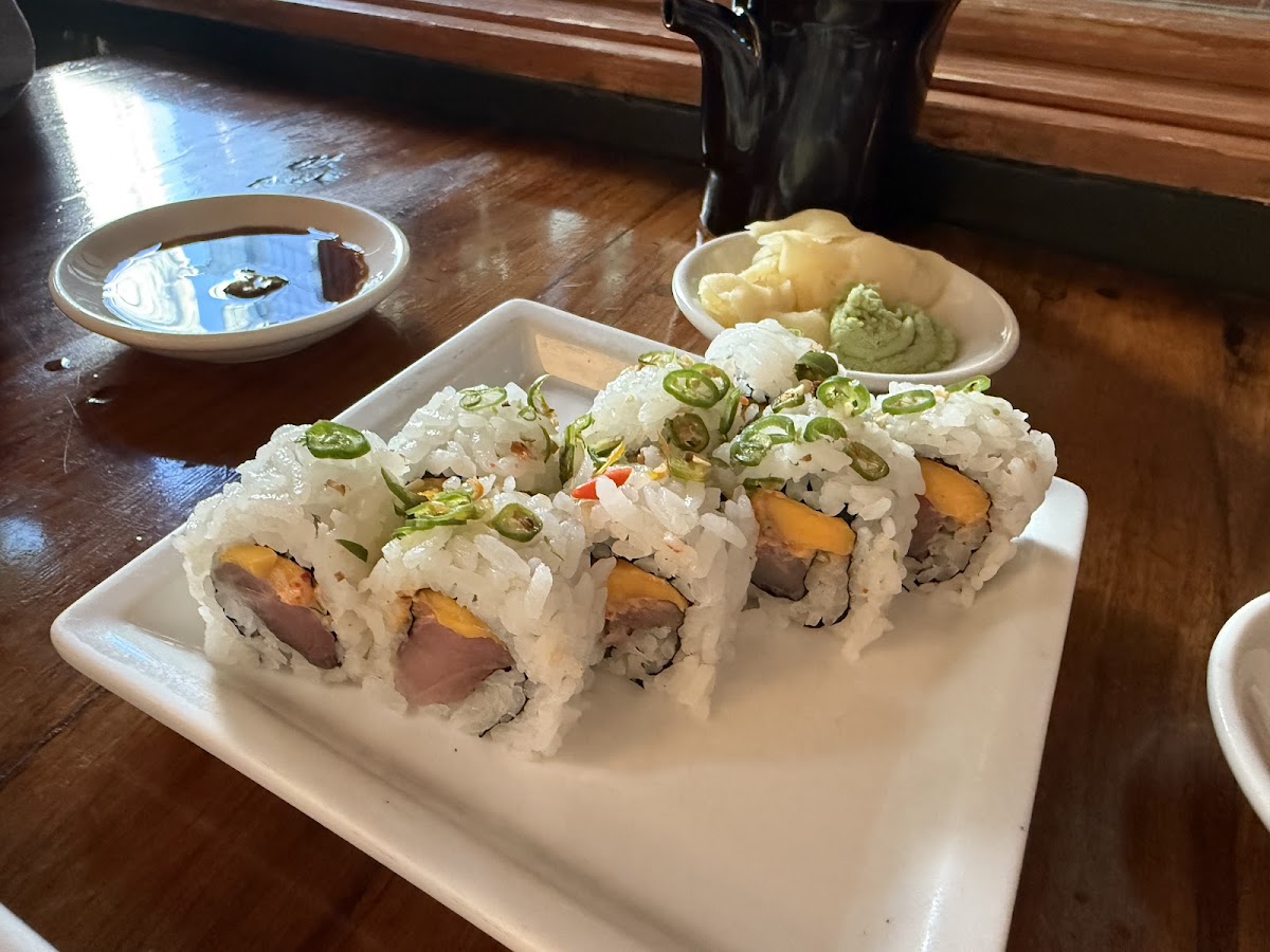 Takashi's menu is a true celebration of flavors, showcasing an array of sushi and lunch plates that cater to every palate. Start your journey with the RICELESS ROLLS, where you can savor the refreshing SUMMIT roll featuring tuna, spiced crab, and sliced avocado expertly wrapped in cucumber—topped with tataki sauce and fresh chilis for a delightful kick. The UPTOWN roll, with its medley of salmon, hamachi, and asparagus, offers a beautiful fusion of colors and flavors that are simply irresistible.